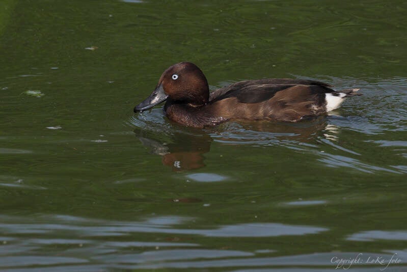 Bovendelen zijn zwartbruin met op de vleugels een groenige glans, en ze hebben verder een witte buik en witte onderstaart dekveren. De snavel is leigrijs met een zwarte nagel, en hebben zwarte poten.