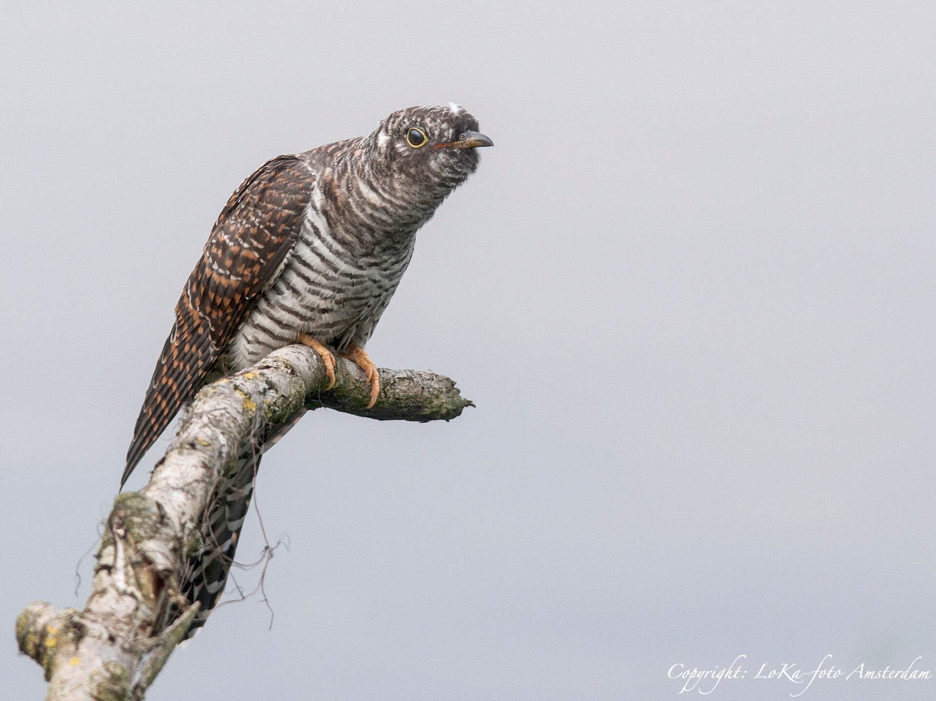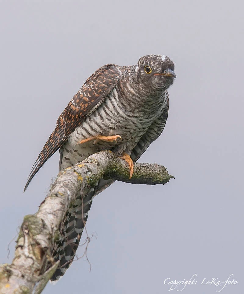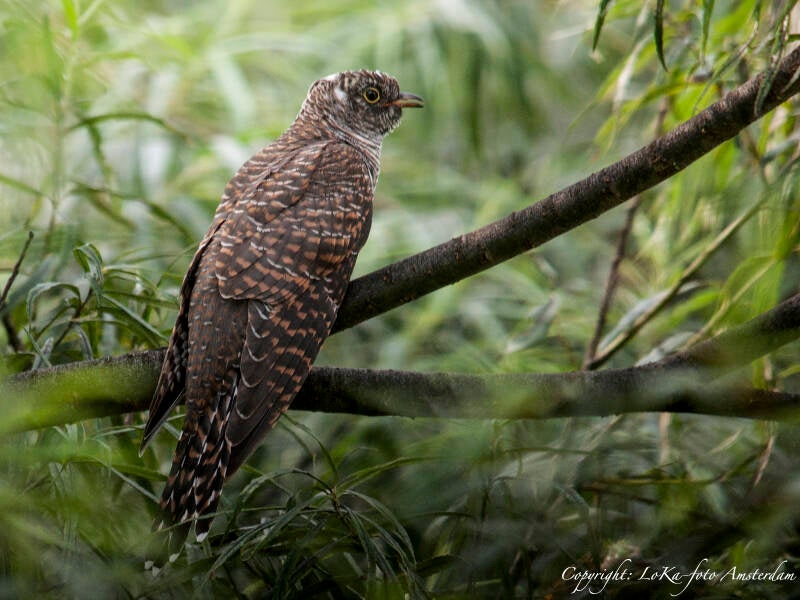 De Koekoek, wat waren we blij met deze waarneming, een jonge Koekoek, want de jongen hebben over het gehele verenkleed dunne donkere dwarstrepen. De volwassen heeft een egale kleur kop zonder tekening.